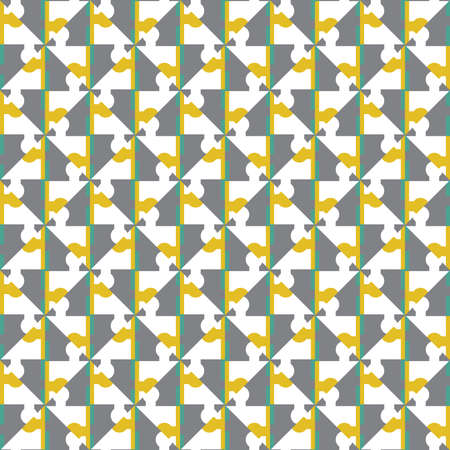 Vector seamless pattern texture background with geometric shapes, colored in green, grey, yellow, gold and white colors.