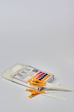 Litmus paper shows acidity, chemical analysis. Indicator for determining reaction medium. Strips and scraps filter paper tape. Most accurate measurement results. Use litmus paper in various fields