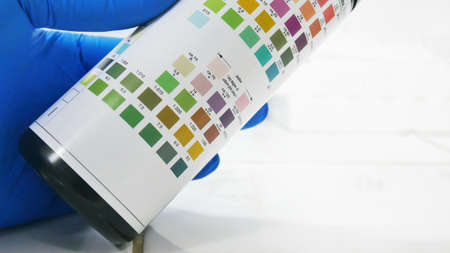 Reagent Strip for Urinalysis , Routine Urinalysis, urine test check-up analysis in laboratory.