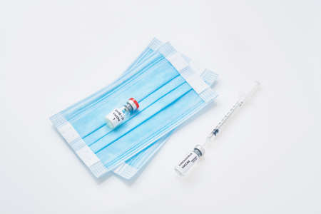 Kuala Lumpur, Malaysia - 25 July 2021 : Bottles of vaccine to prevent corona virus covid-19. White background. Isolate background.
