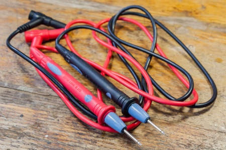 Engineering Measure Unit With Two Connected Probes of Red and Black Color for Indication. Vertical Image Composition