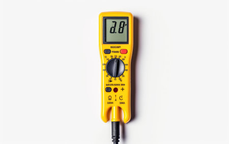 Digital multimeter on a white background. Digital multimeter for measuring electrical current.
