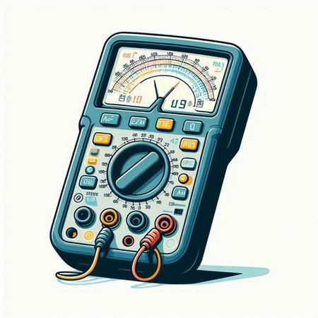 A hand-drawn multimeter is a scale used to measure various values such as voltage, resistance, current, in the scene.
