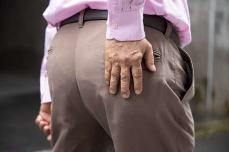 Old Asian man suffering from hip pain