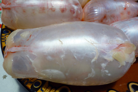 Carp bladder on a plate on a Christmas tablecloth
