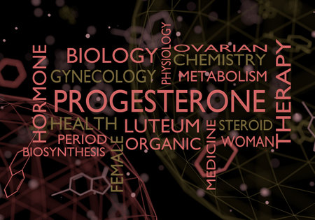 Tags cloud of progesterone hormone. Words collage. 3D rendering