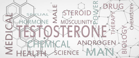 Tags cloud of hormone testosterone. Words collage.