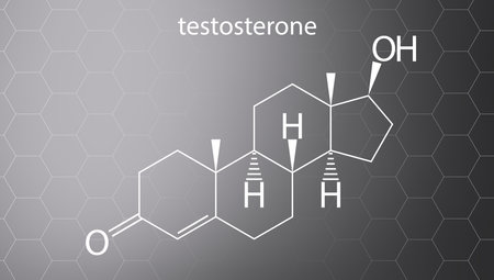 Chemical formula of testosterone over gray honeycombs background.