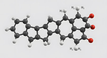 A detailed 3D model of a complex organic molecule, showcasing its intricate structure.