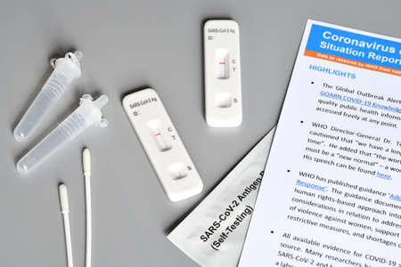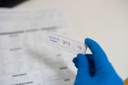 Covid-19 test result with SARS CoV-2 Rapid antigen test kit (ATK), virus infectious protective concept