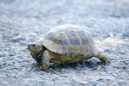 close up of a tortoise climbing to pavement