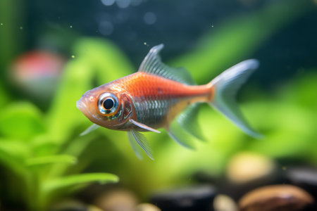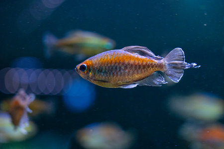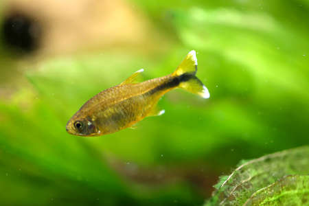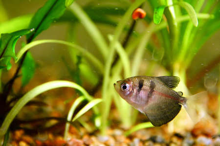 Close up of a copper tetra, copper tetra in freshwater aquarium.
