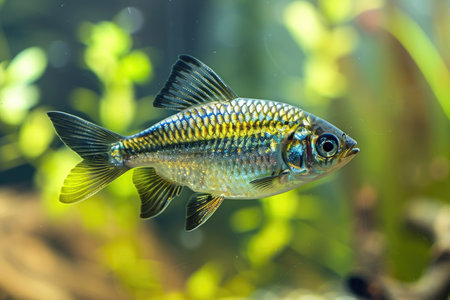 closeup of a chinese danio, popular Aquarium pet in aquaculture, tropical animal specie from Asia