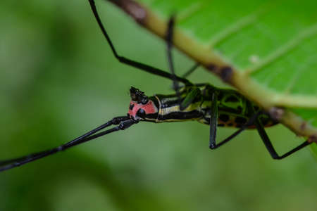 Close up shot of large leg spider with his breeding at botanical garden of Guayaquil, Ecuador