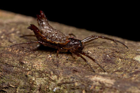 close-up oxyopes javanus troll, brown spider, eyes arranged in a hexagon pattern