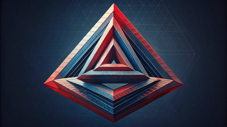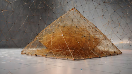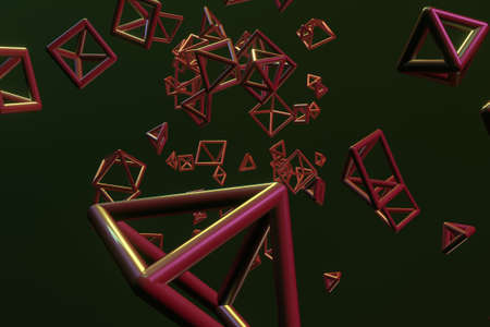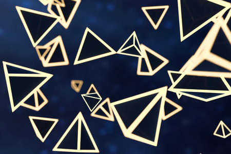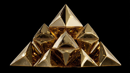 Golden objects of a pyramid shape in an artistic pattern. Ai generated.