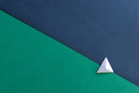 Colorful abstract geometric background with three-dimensional solid figures. Pyramid Dodecahedron prism rectangular cube arranged on colored paper.