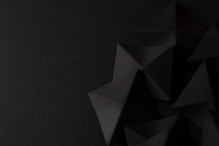 A black background with dark blue and purple triangles in the foreground, with geometric shapes made of glass or plastic floating above it. The triangles have sharp edges and are arranged to form an abstract pattern that suggests movement and depth. There is space between each triangle for text. --ar 26:15 --v 6.1 Job ID: f73d476e-d7be-487f-a118-94a07b3122b2