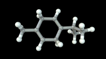 Gamma-terpinene molecule, 3D illustration. Naturally occurring organic compound found in essential oils of lime, mandarin, marjoram, tea tree, and other plants. Has antiseptic, antifungal properties