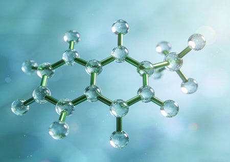 Close-up view of firefly zinc and bisabolol molecules highlighting intricate structural details and innovative applications in scientific research and therapeutic solutions.