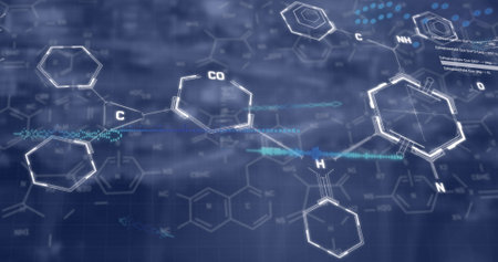 Chemical molecule with blue background, 3d rendering. Computer digital drawing.