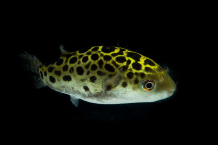 Black spotted pufferfish swimming under the sea
