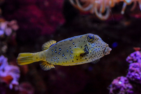 Underwater shot of fish Lactoria cornuta close-up