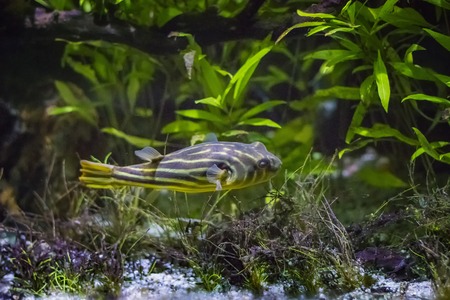 Striped burrfish(Chilomycterus schoepfi) in aquarium fish tank