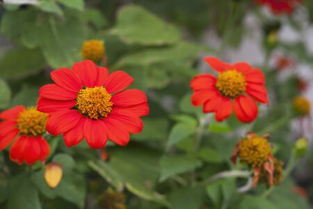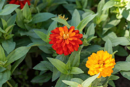 Orange zinnia flowers blooming in a garden, Nature background