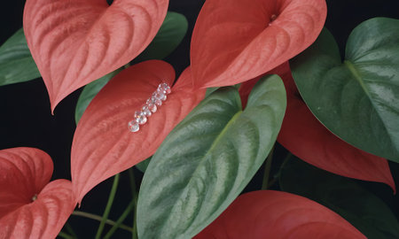 A captivating close-up shot showcasing vibrant red flowers adorned with glistening water droplets, highlighting the beauty of nature.