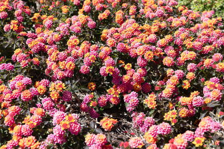 Pink and yellow flowers flowering plant in blossom floral background, blossoming