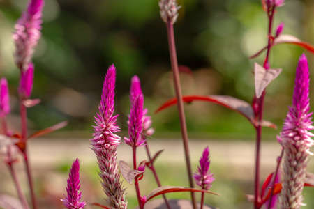 Red cockscomb or Chinese wool flower in garden.