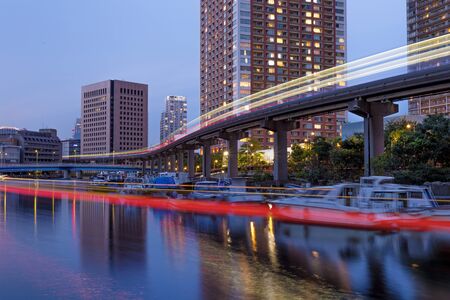 Evening view of the urban railway network. Shooting Location: Minato Ward, Tokyo
