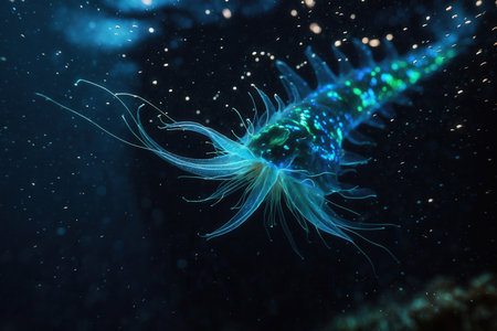 Bioluminescent Microorganism Glowing in Deep Ocean Waters.