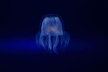 underwater jellyfish swimming at aquarium