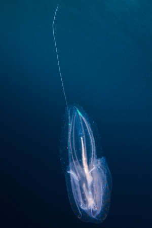 A deep stunning-sea siphonophore drifting gracefully in the ocean depths