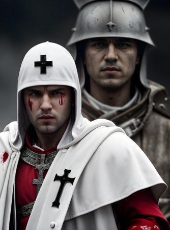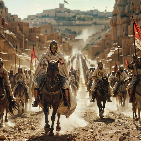 Knights Templar stationed in the Holy Land during the Crusades, illustrating their dedication to protecting sacred sites. Generative Ai