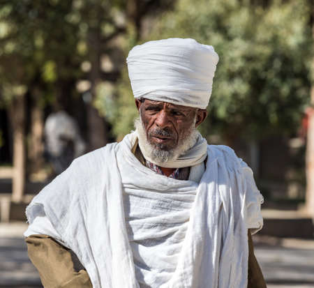 Aksum, Ethiopia - Feb 09, 2020: Ethiopian People at Church of Our Lady St. Mary of Zion, the most sacred place for all Orthodox Ethiopians in Axum, Ethiopia.