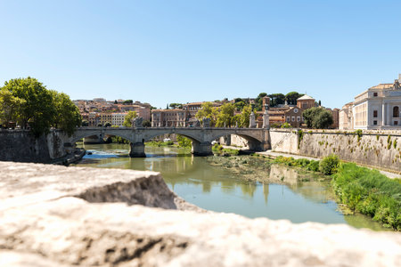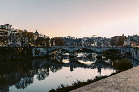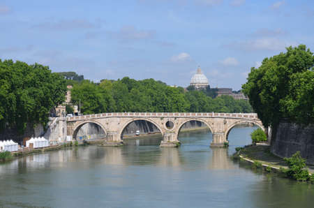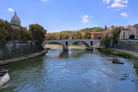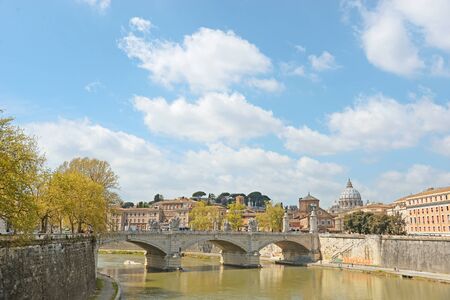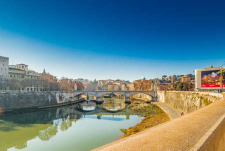 Vittorio Emmanuelle II Bridge beautiful bridge over the Tiber River in Rome in daylight