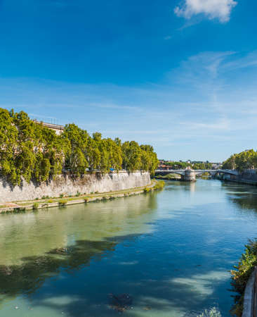 Tiber river and bridge Ponte SantAngelo in Rome, Italy on sunny summer day