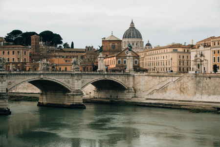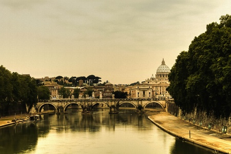 cloudy day on Vatican dome the river bridge is a roman architecture