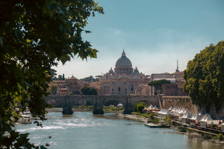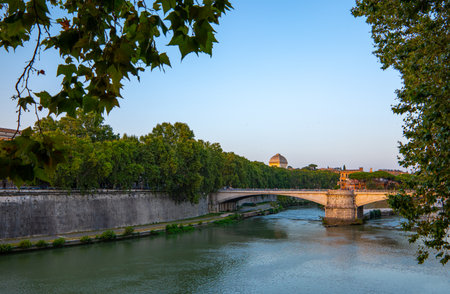 Rome, Italy - Beautiful summer view of the river Tiber with the dome of St. Peter's Basilica in the background