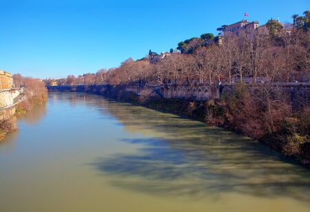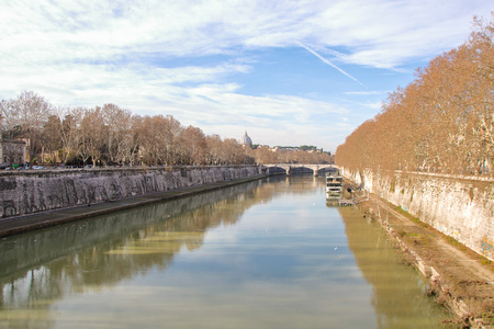 ROME, ITALY - CIRCA NOVEMBER, 2017: view of Tiber riverside and cityscape of Rome. Rome is the capital city of Italy.