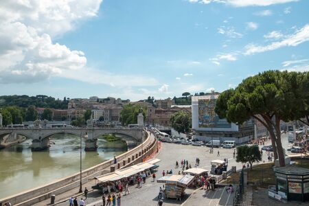 Roma, Italy - August, 7, 2016: Bridge Ponte, Sant'Angelo from Tiber in Roma, Italy