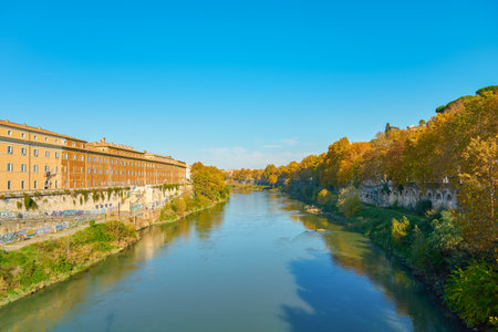 Beautiful Cityscapes of The Tiber (Fiume Tevere) in Rome, Lazio Province, Italy.