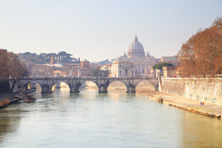 View to the St. Peter's basilica from the Tiber river in Rome, Italy.