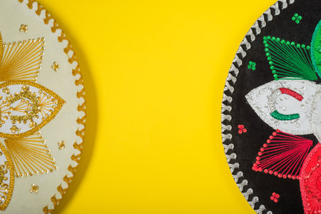 Mariachi hat on yellow background. Mexican independence concept. Cinco de mayo background.