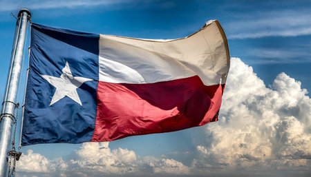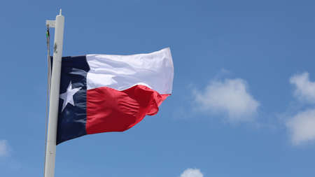Texas flag waving against blue sky. State Flag of Texas on a Windy Day