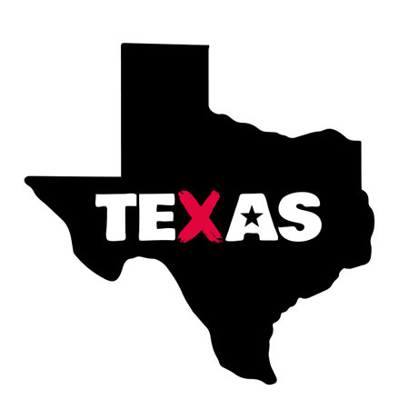 Black and White Silhouette Map of the US Federal State of Texas with it's Postal Code Abbreviation