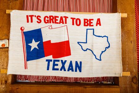 Texas US state national flag on a gray wooden boards background on the day of independence in different colors of blue red and yellow. Political and religious disputes, customs and delivery.